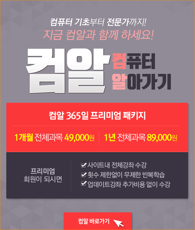 안녕하세요! IT 전문 인강 사이트 컴알 입니다.
