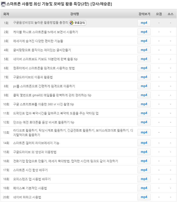 무료회원가입하시면 스마트폰 사용법 최신 기능및 모바일 활용 특강 2탄 1회를 무료로 수강할 수 있습니다.