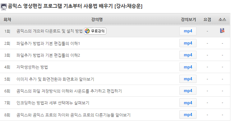 무료회원가입하시면 곰믹스 영상편집 프로그램 기초부터 사용법 배우기 강좌 1회를 무료로 수강할 수 있습니다.