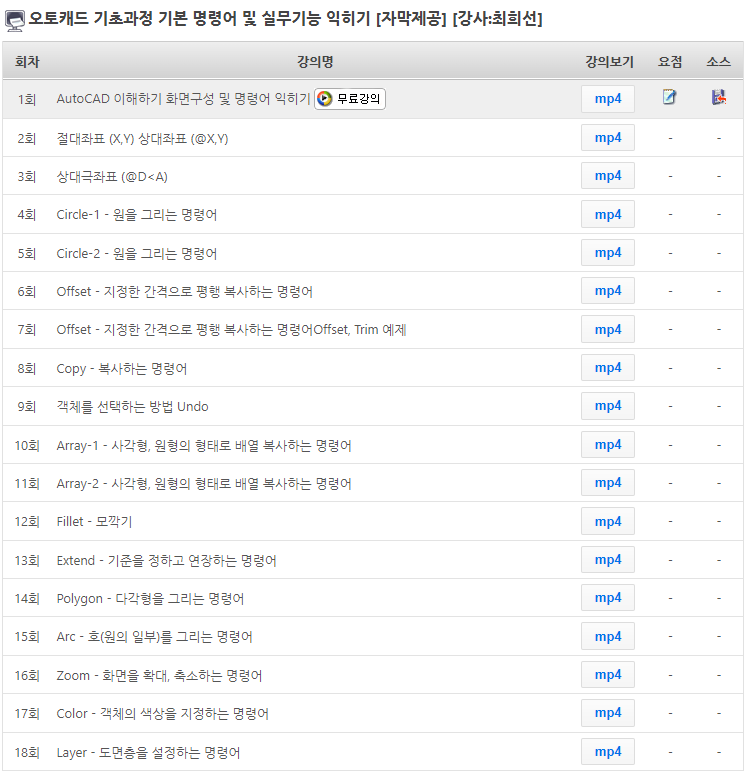 소개할 강좌는 오토캐드 기초과정 기본 명령어 및 실무기능 익히기 강좌입니다.