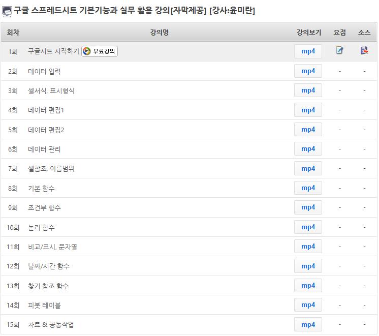 무료회원가입하시면 구글 스프레드시트 기본기능과 실무 활용 강의 1회를 무료로 수강할 수 있습니다.