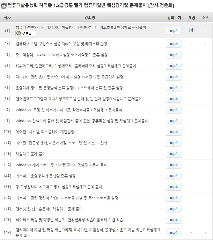 소개할 강좌는 컴퓨터활용능력 자격증 1,2급공통 필기 컴퓨터일반 핵심정리및 문제풀이 강좌입니다.