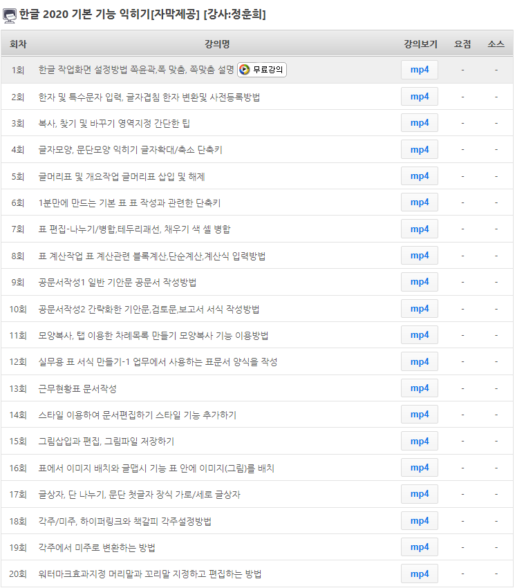 무료회원가입하시면 한글 2020 기본 기능 익히기 강좌 1회를 무료로 수강할 수 있습니다.