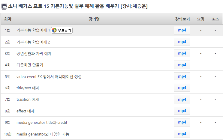 소개할 강좌는 소니 베가스 프로 15 기본기능및 실무 예제 활용 배우기 강좌입니다.