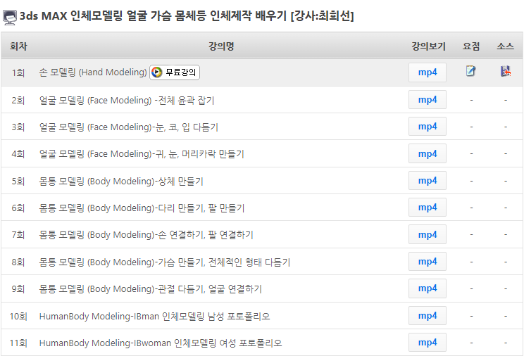 무료회원가입하시면 3ds MAX 인체모델링 얼굴 가슴 몸체등 인체제작 배우기 강좌 1회를 무료로 수강할 수 있습니다.