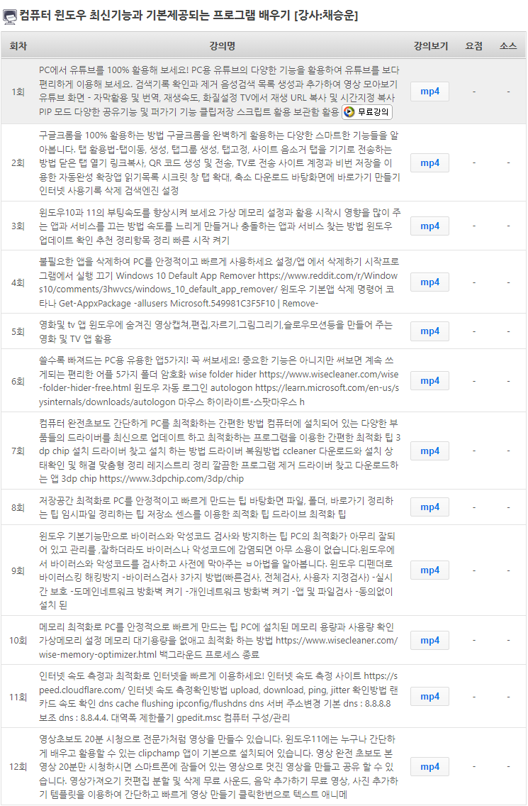 무료회원가입하시면 컴퓨터 윈도우 최신기능과 기본제공되는 프로그램 배우기 강좌 1회를 무료로 수강할 수 있습니다.