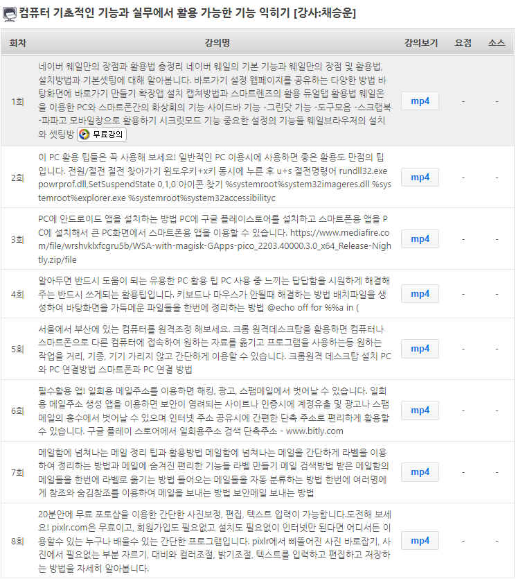 무료회원가입하시면 컴퓨터 기초적인 기능과 실무에서 활용 가능한 기능 익히기 강좌 1회를 무료로 수강할 수 있습니다.