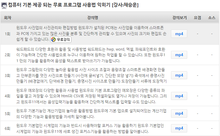 무료회원가입하시면 컴퓨터 기본 제공되는 무료 프로그램 사용법 익히기 강좌 1회를 무료로 수강할 수 있습니다.