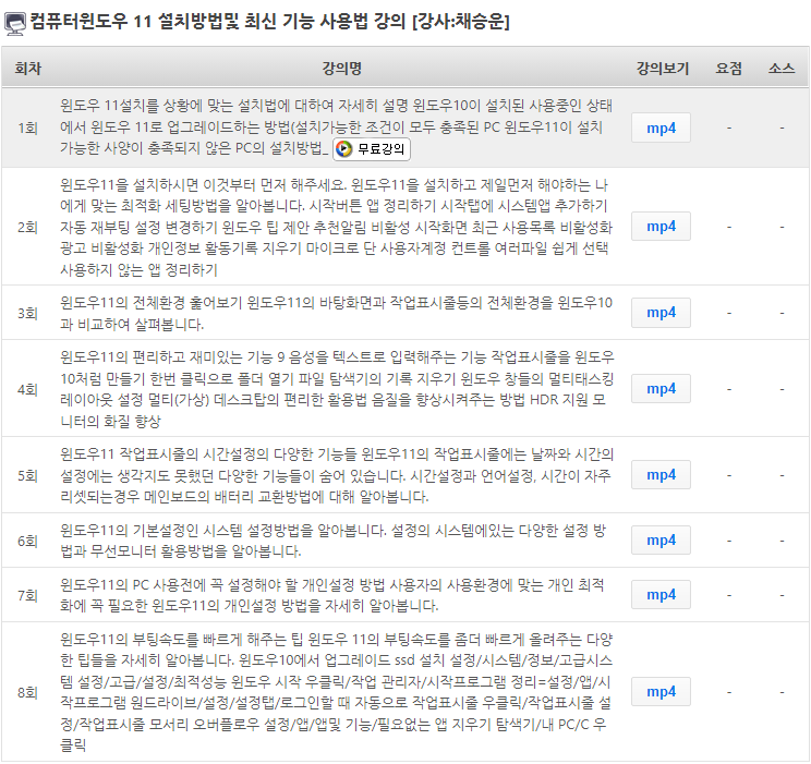 무료회원가입하시면 컴퓨터윈도우 11 설치방법및 최신 기능 사용법 강의 1회를 무료로 수강할 수 있습니다.