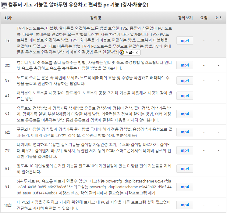 무료회원가입하시면 컴퓨터 기초 기능및 알아두면 유용하고 편리한 PC 기능 강의 1회를 무료로 수강할 수 있습니다.
