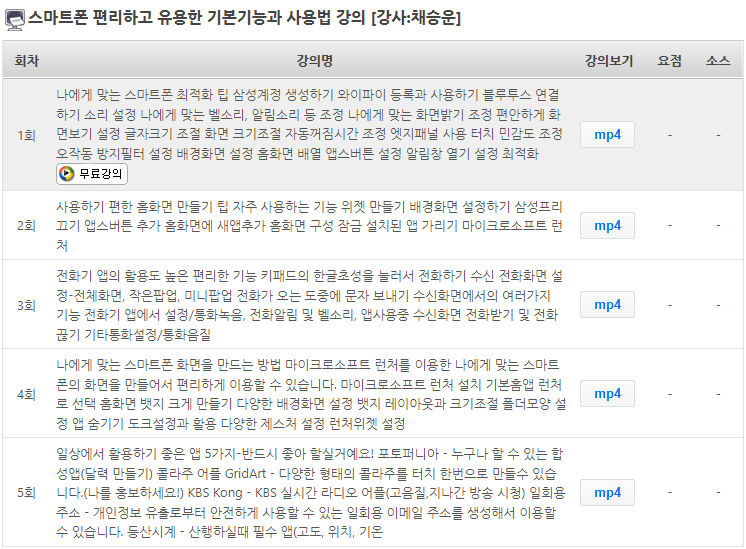 무료회원가입하시면 스마트폰 편리하고 유용한 기본기능과 사용법 강의 1회를 무료로 수강할 수 있습니다.