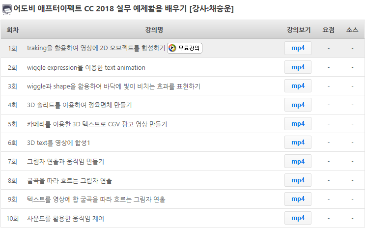 무료회원가입하시면 어도비 애프터이펙트 CC 2018 실무 예제활용 배우기 강좌 1회를 무료로 수강할 수 있습니다.